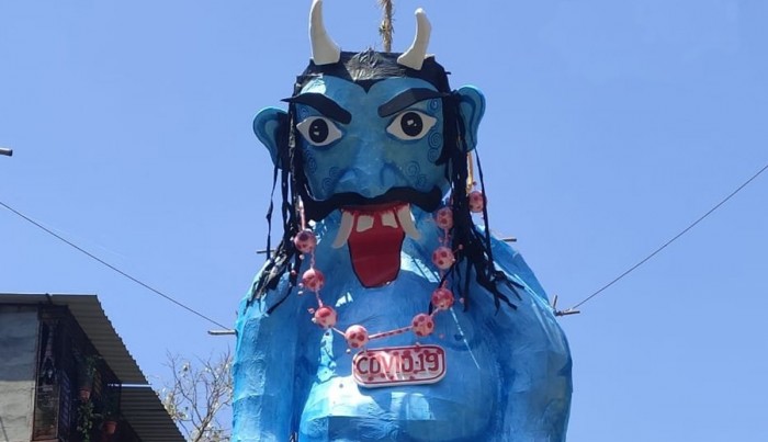 اب ان دنوں کورونا وائرس کو ایک شیطان سمجھتے ہوئے ہندووں نے اپنی روایت کے مطابق کورونا کا ایک پتلا بنا کر اسے جلایا۔