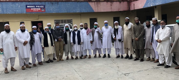 ضلعی انتظامیہ نے ایس او پیز پر عملدرآمد کے لیے کی علماء اور تاجروں سے ملاقاتیں شروع کر دی ہیں ۔ تھانہ میر پور کے ایس ایچ او عبد الغفور نے علماء سے مطالبہ کیا ہے کہ مساجد سے دریاں ، قالینیں اُٹھائے جائیں ، صفوں کے درمیان فاصلہ قائم رکھا جائے ۔ انہوں نے علماء سے درخواست کی کہ ماسک کے بغیر کسی نمازی کو مسجد میں داخل ہونے کی اجازت نہ دی جائے ۔ انہوں نے کہا کہ عشاء کی نماز کے بعد علماء مساجد میں لاؤڈ اسپیکر پر لوگوں کو کورونا وائرس اور احتیاطی تدابیر سے متعلق آگاہی دیں ۔