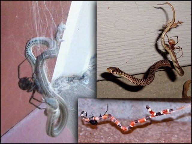 علاوہ ازیں ’’تھیرائیڈائیس‘‘ (Theridiis) خاندان سے تعلق رکھنے والی مکڑیاں، سانپوں کو شکار کرنے کے 60 فیصد واقعات میں ذمہ دار ثابت ہوئیں۔