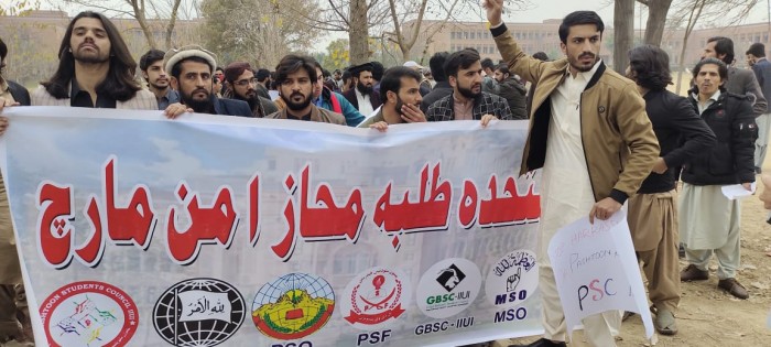 مبینہ طور پر مسلم اسٹوڈنٹس آرگنائزیشن ، جمیعت طلبہ اسلام ، پشتون اسٹوڈنٹس کونسل، پیپلز ایس ایف، انصاف اسٹوڈنٹس فیڈریشن اور گلگت بلتستان اسٹوڈنٹس کونسل کی امن واک جاری تھی کہ ایڈمن بلاک کے قریب اسلامی جمعیت طلبہ نے واک پر حملہ کر دیا .