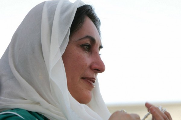 Former Pakistani Prime Minister Benazir Bhutto cries as she lands at Karachi international airport after leaving Dubai, 18 October 2007. Bhutto is returning to the country after eight years of self imposed exile when she faced charges of corruption. U.S officials have backed a possible power-sharing deal between Bhutto and currrent Pakistani President, General Pervez Musharraf. Almost 20,000 troops and police have been deployed in Karachi amid threats by Islamist militants to assassinate both Musharraf and Bhutto on her return. AFP PHOTO/CARL DE SOUZA