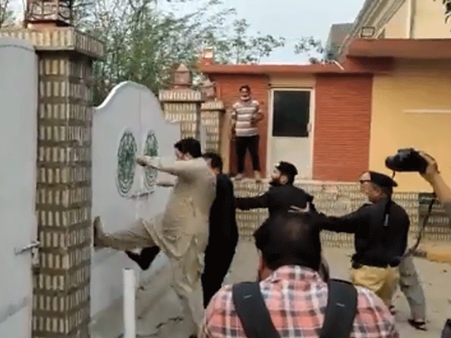 پی ٹی آئی کے کارکنان کا سندھ ہاؤس پر دھاوا، دروازہ توڑ دیا