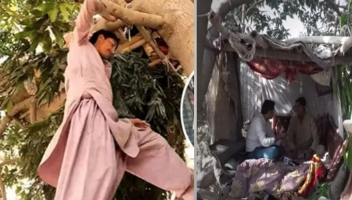 کراچی کا رہائشی فرمان علی عزیز آباد کے کوہِ نور پارک میں آم کے درخت پر 8 برس سے زندگی گزاررہا ہے۔