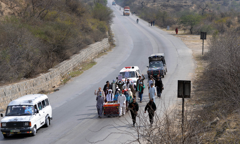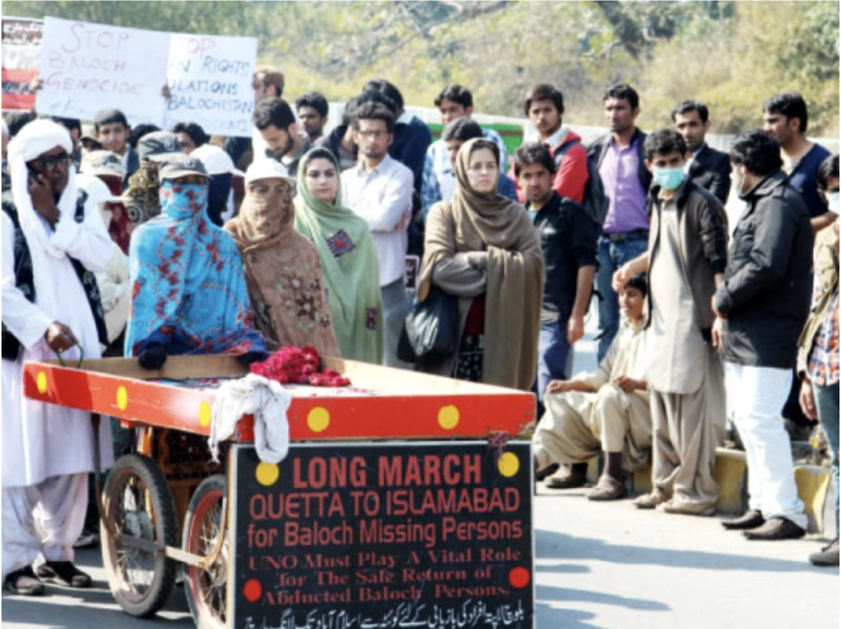 ماما کے ساتھ لاپتہ افراد کےبچے تھے ، لاپتہ بھائیوں کی بہنیں تھیں. ماما خود ایک لاپتہ ہونے کے بعد ملنے والی مسخ شدہ لاش کے وارث تھے ماما کے قافلے میں ایک بچہ بھی تھا ، وہ بھی اس مسخ شدہ لاش کا وارث تھا. ماما کو کہا گیا تھا کہ تمھیں تمھارا بیٹا مل جائے گا ، وعدہ کرنے والوں نے جھوٹ نہیں بولا ، ماما کو اگلے روز کہا گیا کہ فلاں جگہ سےاپنا بیٹا اٹھا لو ، ماما اس جگہ پہنچا تو وہاں ایک مسخ شدہ لاش پڑی ہوئی تھی . ماما نے ایک بار بے اشک نگاہوں سے آسمان کی طرف دیکھا اور پوتے کو ساتھ لیکر بیٹے کی لاش بلوچ مٹی میں دفنا دی .