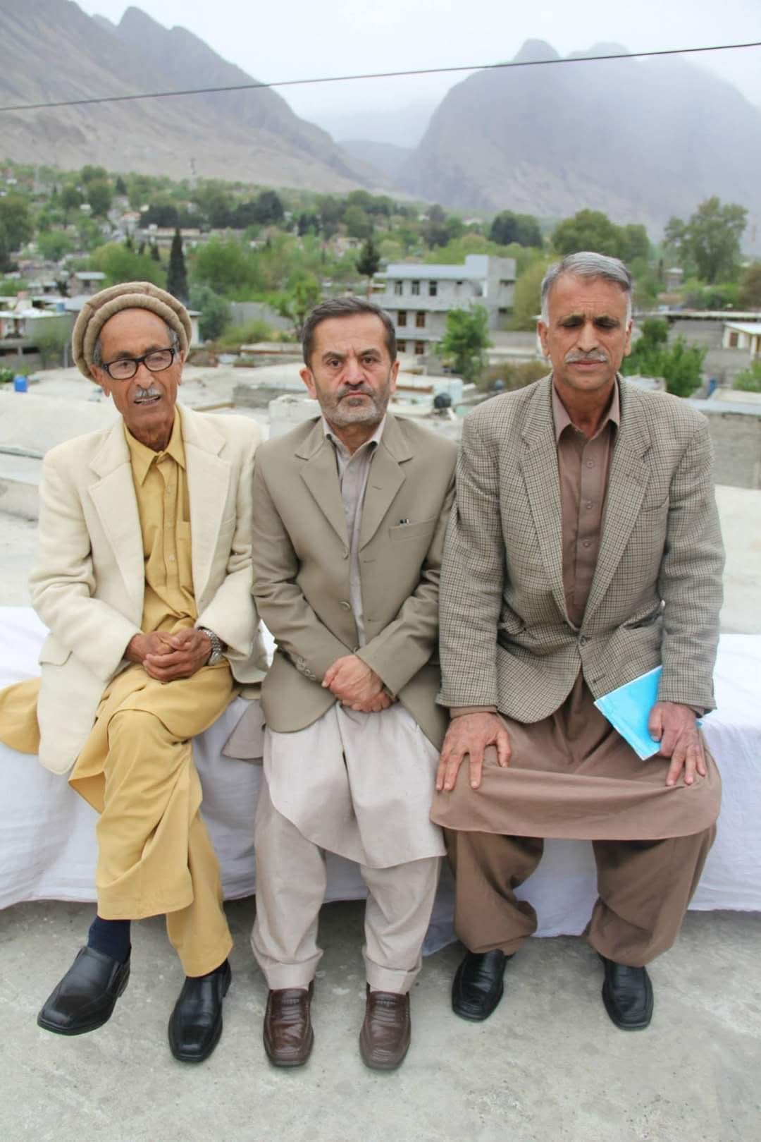 مجھے گمان ہے کہ یہ تصویر پیلس ہوٹل کی چھت پر لی گئی تھی۔ اگر حافظہ خطا نہیں کر رہا تو اس یادگار لمحے کو محفوظ کرنے والا کیمرہ بھی میرا ہی تھا اور تصویر بھی میں نے کھینچی۔ اس روز پیلس ہوٹل میں ایک ادبی پروگرام منعقد ہوا تھا۔ فضا میں علم و فکر کی سنجیدگی بھی تھی اور گلگتی روایت کی شگفتگی بھی۔ یہ تینوں حضرات اپنی اپنی متانت، وقار اور علمی جاہ و جلال کے ساتھ تشریف لائے تھے۔ گفتگو کے دوران جب تاریخ، تہذیب اور علم و ادب کے موضوعات چھیڑے گئے تو یوں محسوس ہوتا تھا جیسے گلگت بلتستان کی صدیوں پرانی روح ان کے الفاظ میں سانس لے رہی ہو۔